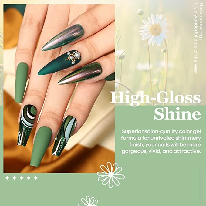 Modelones Gel Nail Polish Kit, 38 Pcs All Seasons Fall Holiday Gel Polish Set Soak Off Translucent Mood Cat Eye Glitter Nail Polish Gel with Nail Primer Glossy Matte Top Base Coat Gift for Women.