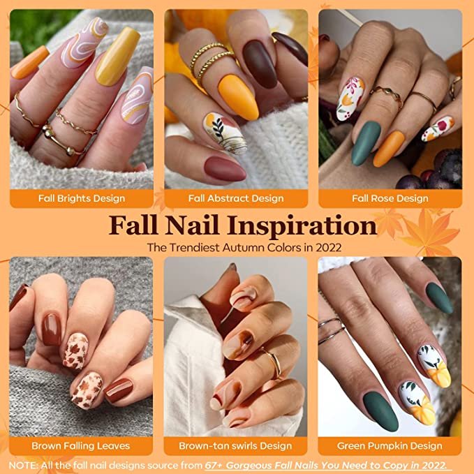 Makartt Gel Nail Polish Kit Fall Color 22 Colors Orange Brown Glitter Nail Polish Set Soak Off Autumn Nail Design Decoration with Top Base Coat DIY Nail Manicure Salon Home All Seasons Gift for Women